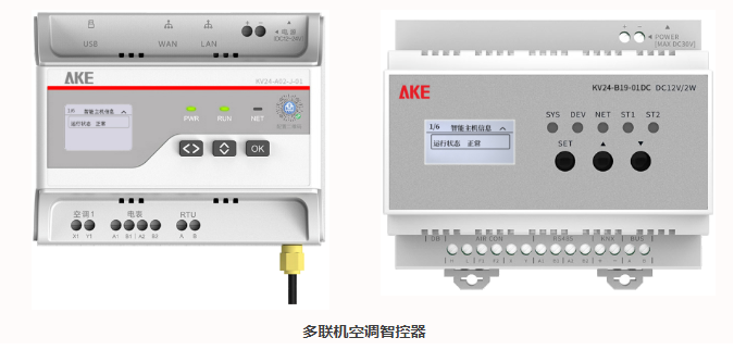 在多联机空调系统上加装多联机空调智控器负责空调运行参数和空调用电量的采集,并将数据上传至艾科智慧能源管理平台,实现多联机空调的远程监控和计费功能。